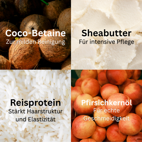 💧 Curl Caring Shampoo – Sanfte Reinigung mit Coco-Betaine statt aggressiver Sulfate, erhält die natürliche Feuchtigkeit.