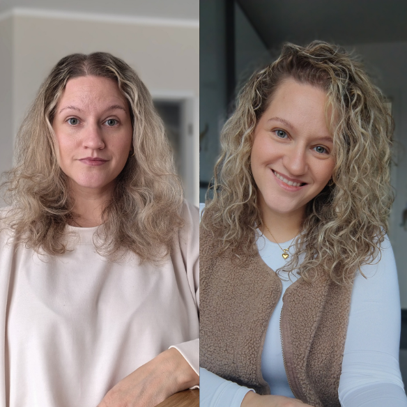 That’s wavy hair begging for moisture + curl-friendly styling.